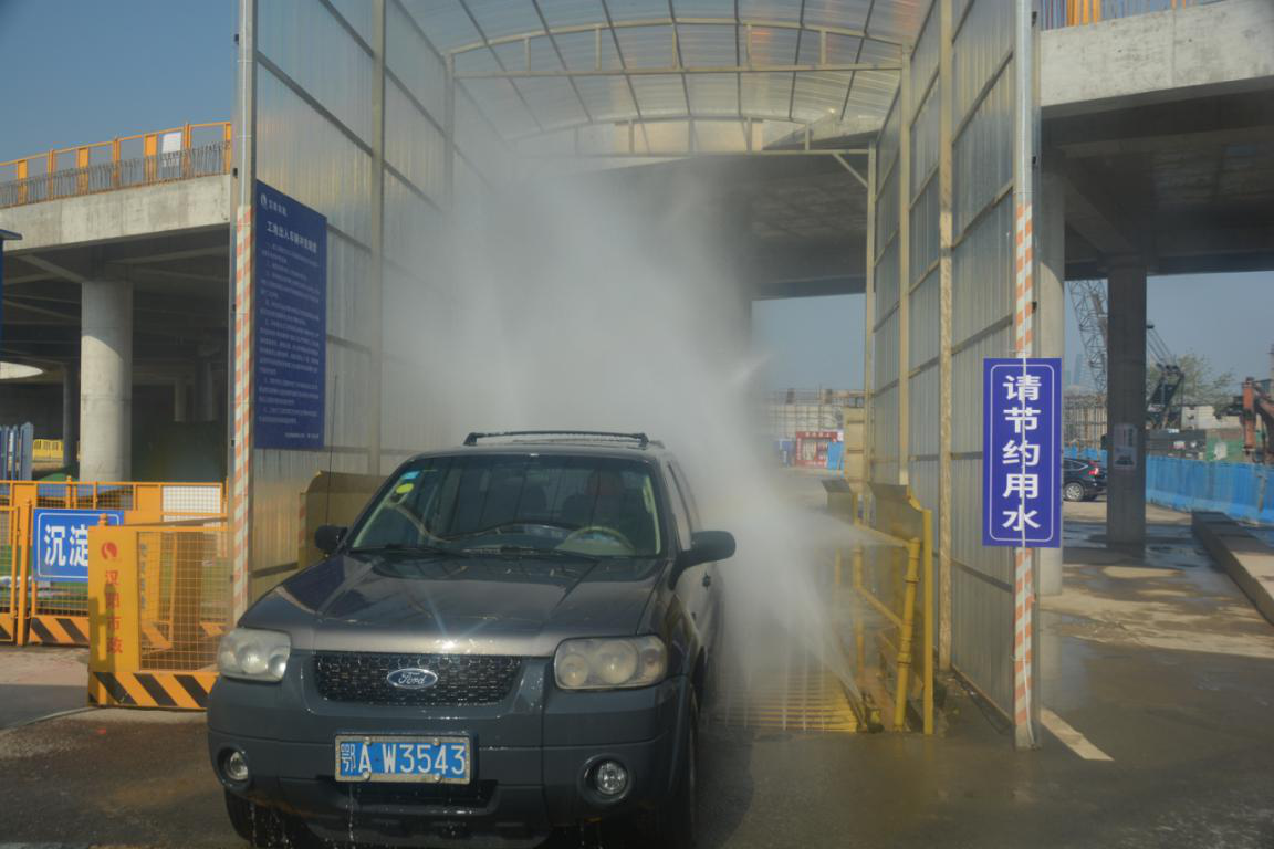 项目部为严格践行安全文明施工,在项目大门沿路一侧围挡采用了6米高的绿植拼装式围挡,外观统一美观,能有效的起到隔音降尘作用。在靠近施工区路面围挡一侧,绿化带内设置了绿植和文明宣传标语。为全面严格落实“六化”标准,项目部成立文明施工专班,每天定时对工地大门、现场便道等进行清扫和洒水降尘,确保周边整洁美观。项目大门处还布置了全自动洗车棚及车辆门禁检测系统,实现车辆进出冲洗干净,杜绝带泥上路。