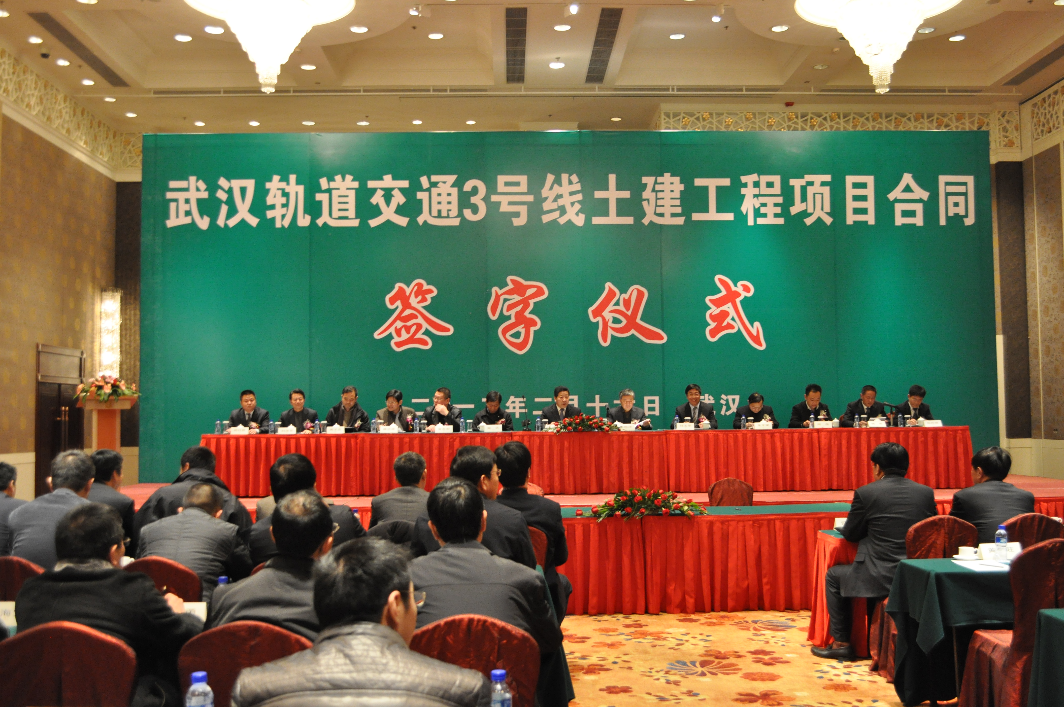 2012年2月16日下午,连通三金潭到沌阳大道的武汉轨道交通3号线一期土建工程项目合同签字仪式在武汉香格里拉大酒店隆重举行,标志着武汉地铁又一条线路进入实质性建设阶段。武汉地铁集团总经理刘玉华与14家中标单位代表签订施工合同,武汉市发改委副主任熊贻沛、市相关部门领导、地铁集团董事长涂和平及其主要领导出席签约仪式。
