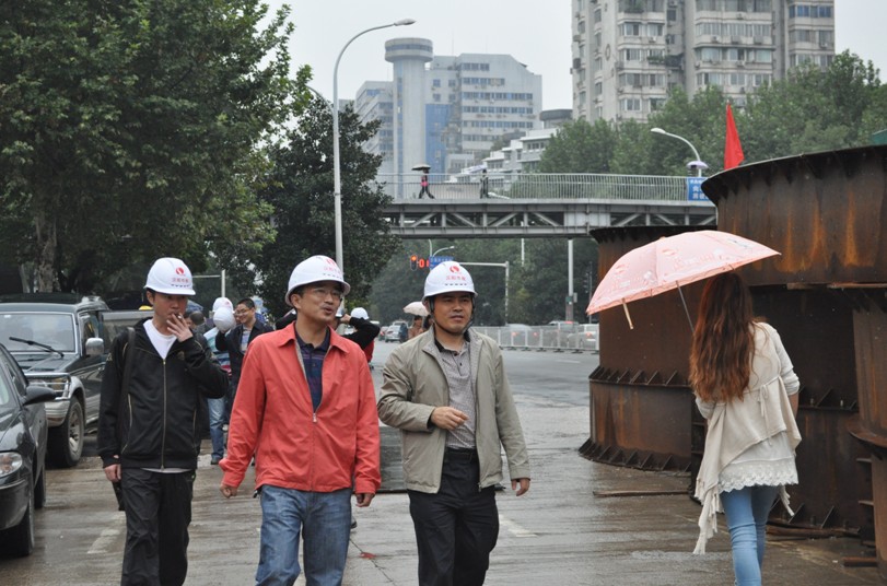2011年10月1日上午,集团公司领导在细雨中来到洪山广场地铁站项目部,实地查看现场施工情况,详细了解施工进度安排,慰问此刻仍在忙于盾构机进洞后续事宜的现场管理人员,并与项目部全体施工人员见证了“汉阳市政1号”盾构机右线进洞。