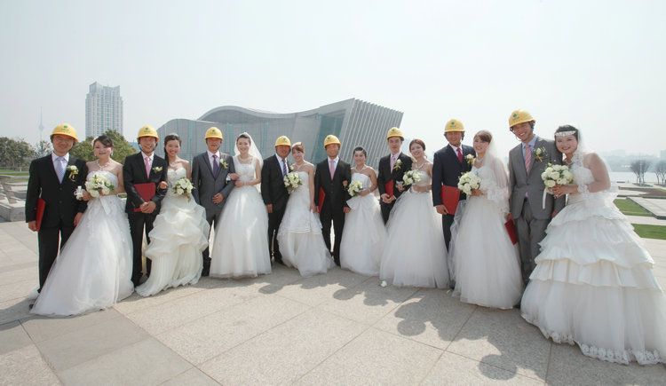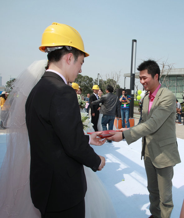 2013年3月8日,由武汉钟鑫市政建设工程有限公司主办的“EVERGREEN——幸福常青”大型集体婚礼在汉阳区琴台食上酒店盛大举行,八对新人齐聚于此,在300名亲朋好友及领导同事的祝福声中,携手步入婚姻的殿堂。婚礼中还出现了充分展现市政行业特点的新郎佩戴安全帽环节。