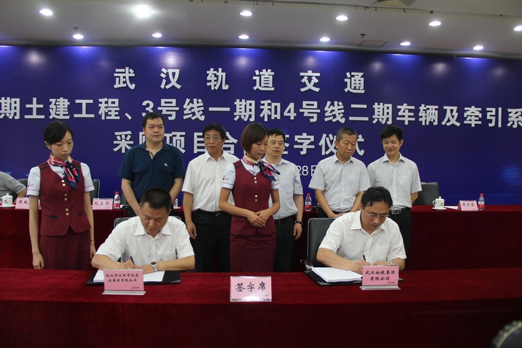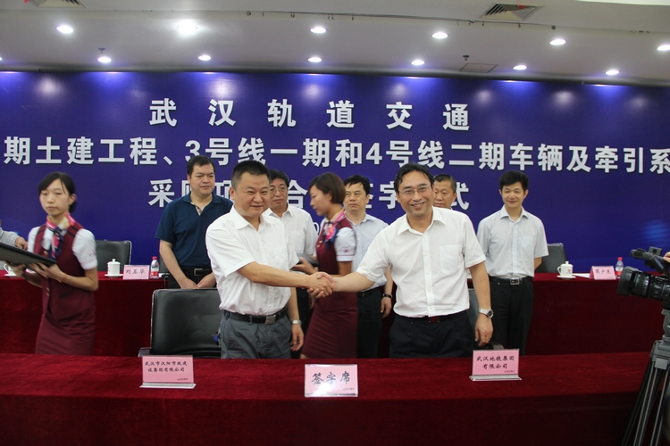6月28日下午,武汉地铁集团与武汉市汉阳市政建设集团公司等16家施工单位签订地铁6号线一期工程土建20个标段合同,预计6号线一期工程7月全面开工,2016年底建成通车。签字仪式上,地铁集团董事长刘玉华介绍了6号线项目合作的情况。汉阳市政建设集团董事长胡红胜作为施工代表发言,表达了建设武汉地铁项目的信心与决心。