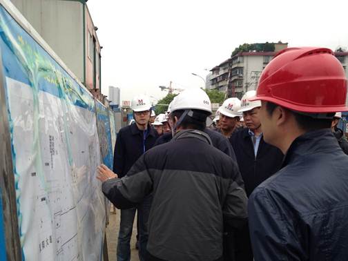 2014年4月16日9点30分,地铁集团董事长刘玉华一行来到武汉市轨道交通四号线二期八标工地进行了视察工作,我公司王总经理陪同地铁领导视察了工地,就工地的施工进度、工地的安全文明、出入口的工期问题进行了详细的解答。地铁领导对汉阳市政进行了高度的评价,他说到八标作为二期的重要地铁车站,其车站长度长,施工工艺复杂,在这两年多的时间里汉阳市政不但没有退缩,还出色的完成了车站主体结构的施工任务。同时,他鼓励我们要不断开拓创新,做好出入口施工,配合其他单位,共同努力,安全生产文明施工,确保四号线二期今年的顺利通车。