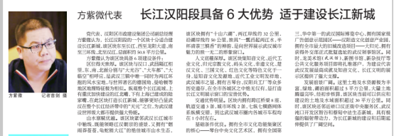 党代表、汉阳区市政建设集团公司副总经理、武汉钟鑫市政建设工程有限公司董事长方紫微认为,长江汉阳段具备六大优势,非常适宜建设“长江新城”。方紫微从城市规划的角度分析,具体阐述了长江汉阳段的六大优势:区位得天独厚、山水禀赋优越、人文底蕴深厚、交通优势明显、基础条件优良、发展前景广阔。方紫微这一分析阐述基于三点:其一,武汉城市发展从强化基础设施建设,到提升城市形象和文化品位,两手抓,两手都要硬,长江汉阳段经过近年来的发展,基础设施硬件与“知音”文化、“高山流水”的文化底蕴已经处于全市领先地位;其二,树立城市唯一性,充分挖掘区域的独特优势,打造有自身特色的“长江新城”。长江汉阳段坐拥两江交汇的地理优势,东、南、北面分别与“大光谷”、“大车都”、“大临空”相呼应,是全球少有风水宝地,长江汉阳段可以将这种得天独厚的优势发挥充分利用到极致,从而达到城市唯一性标签的目的,让武汉城市建设独树一帜;其三,长江汉阳段有利于带动城市经济发展,长江新城就是树立一个新的样板工程,通过区域整体高起点规划,聚合城市要素,提升区域板块城市功能,吸引投资置业,带动就业,从而起到以点带面拉动城市经济发展的作用。长江汉阳段目前具有地铁3号线、4号线以及6号线和2条城市环线、8座跨江桥梁,区域内拥有“十山六湖”,临近硚口汉正街中央服务区、龙阳湖健康谷、沌口开发区智谷和蔡甸中法生态新城,具有极强的辐射带动力,为长江新城的建设和后期延伸提供了广阔空间。