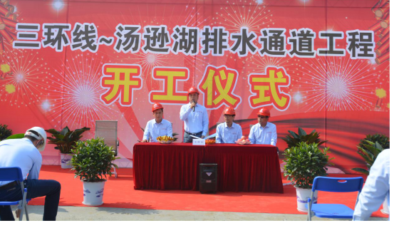 开工典礼仪式在9点18分正式启动,汉阳市政四公司项目经理刘小勇正式宣布工程开工。汉阳市政四公司总经理涂轶铭致辞。涂轶铭在致辞中表示,本次三环线-汤逊湖排水通道工程是武汉市“四水共治”建设工程的一大重点,也是武汉市排水惠民民生工程的重要一站,业主武汉地铁集团高度重视,对工程的招标要求极高,从20余家投标单位中精心筛选出最合适的单位,对此项工程高度负责。涂轶铭表示,本次排水通道工程是汉阳市政继中标夹套河骨干箱涵工程后在水务市场的再一次“蝶变”,汉阳市政将牢记企业“诚实、信誉、优质、创新”的精神,以铁的意志、铁的制度、铁的纪律和铁的执行力,竭尽全力,精心准备,谨记质量安全文明生产理念,提高施工技术和管理水平,六个月后如期向业主交付一份满意的答卷。