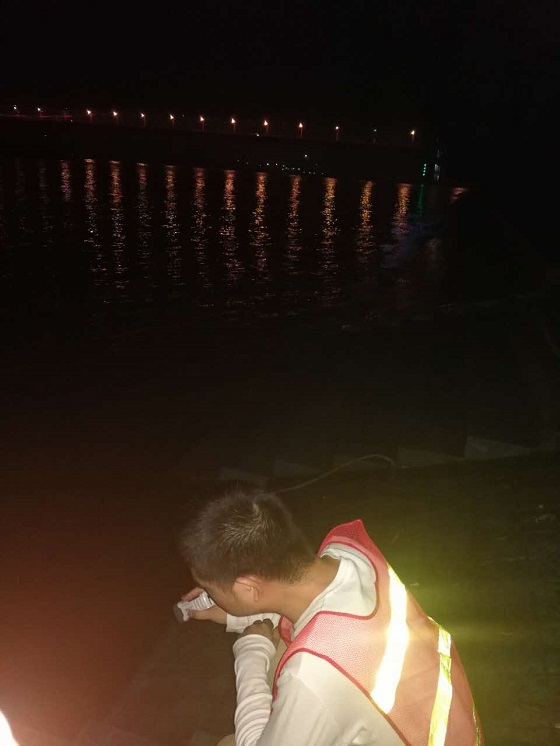 图为钟鑫公司职工夜间12点巡查水位