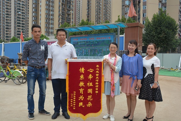 “李经理,真是太感谢你们了!”9月1日开学日,武汉市汉阳区鹦鹉洲幼儿园园长陈艳将一面写着“心牵祖国花朵,情系教育为民”的锦旗送到夹河路(向阳西路~马鹦路)道路及排水工程项目部,对项目部优质、便民、高效的工程建设表示真诚感谢。感谢项目部工作人员急幼儿园所急、想幼儿园所想,为解决幼儿园交通出行问题,专门订制了施工计划,于9月1日开学前顺利完成了该段道路施工,有效保障了幼儿园的正常教学,为师生的出行和家长对孩子的接送提供了便利的条件,为此幼儿园特向项目部赠送锦旗以表谢意。
