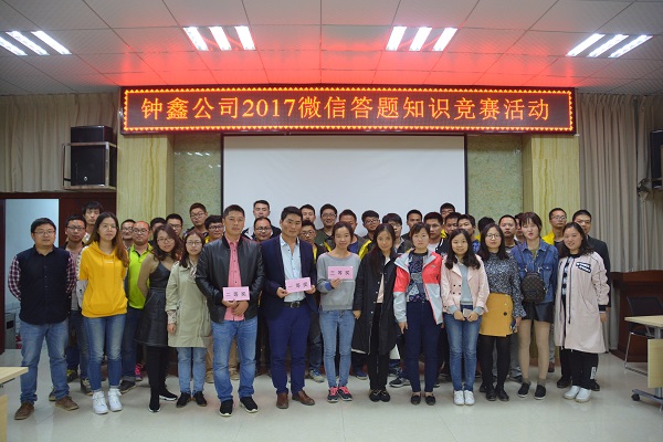 为进一步落实施工企业全员质量意识和生产主体责任意识,继续深入开展“质量月”活动,宣传贯彻“大力提升质量,建设质量强国”,2017年10月27日晚19:00,由钟鑫公司质安部组织举办的微信答题知识竞赛在公司一号会议室顺利开展,来自公司七大项目部的选手和后勤部门全体人员约50人参赛。
