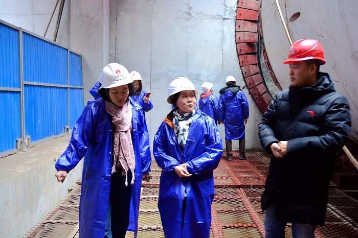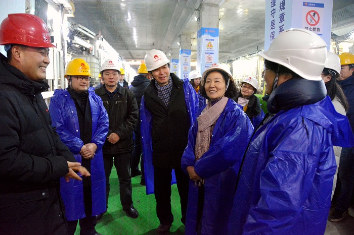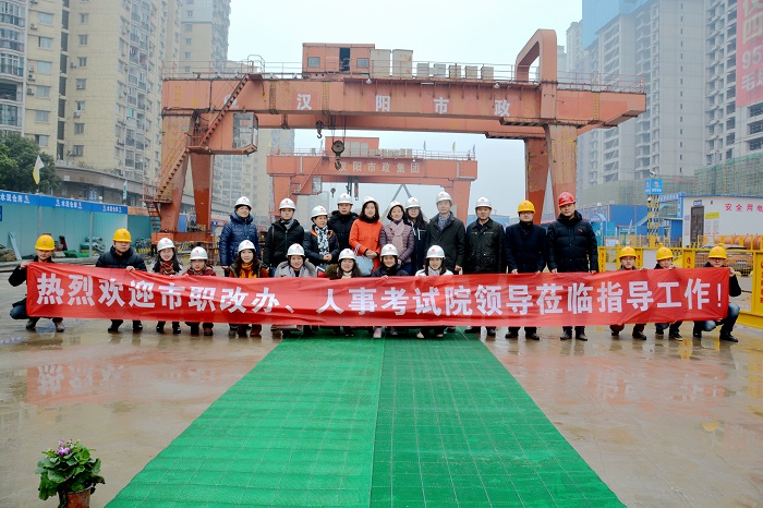 1月16日下午14:30,武汉市人事考试院副院长郭艳、朱江等一行来到武汉市轨道交通5号线工程第七标段进行现场调研,汉阳市政集团公司党委副书记陈颖、副总经理邢荣斌等人陪同调研。