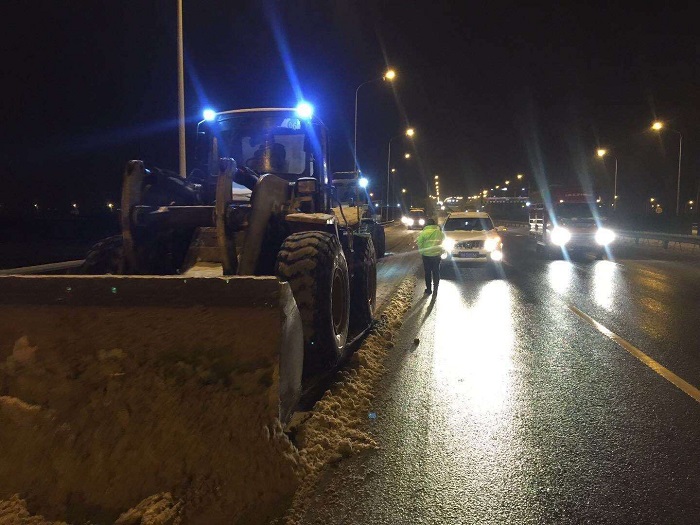 时间来到27日晚上23时,在三环线白沙洲大桥——国博大道路段,汉阳市政钟鑫公司的抢险队伍在汉阳市政集团副总经理、钟鑫公司董事长方紫微的带领和指挥下,克服白天一整天抗雪抢险的疲惫感,紧急调度机械设备和抢险人员,连夜前往抢险路段奋战3小时,在寒冷冬夜顺利完成了抢险任务。