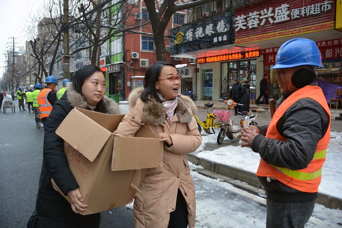 指针来到下午14时,钟鑫市政“铁军”在公司领导的带领下,抢险队伍马不停蹄地来到了国博大道。勘探完现场之后立即做出工作部署,将全体人员和机械按照路段划分为三个路段进行除雪破冰。下午的国博大道,寒风凛冽,气温格外寒冷。好在钟鑫公司的女同志们不顾严寒,精心准备了充足的姜汤和热腾腾的包子,为饥寒交迫的抢险队伍送来了热饮和食物,姜汤驱除寒气,食物更暖人心,队伍在下午18时顺利完成了清扫任务。期间,方紫微带领部分人员火速驰援马沧湖路进行路面清扫,撸起袖子和大家伙儿一起干!清扫完毕的马沧湖路焕然一新。