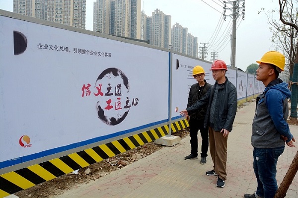 近两周以来,汉阳市政钟鑫公司精心推选出了企业文化宣传大使在各职能部门、各项目一线进行企业文化成果宣传贯彻。公司后勤部门精心制作悬挂了企业文化宣传展板,并将成熟完善的企业文化体系PPT不间断的在公司电子显示屏上进行展示,让企业文化得到更好地普及。此外,钟鑫公司八项目部更是在项目围挡上精心制作了企业文化墙,钟鑫公司总经理、企业文化落地小组副组长卢永红深入现场对项目一线职工进行了全方位、多层次的企业文化讲授解读,让企业文化成果真正的深入人心,外化于行,全力助推企业文化落地一线!