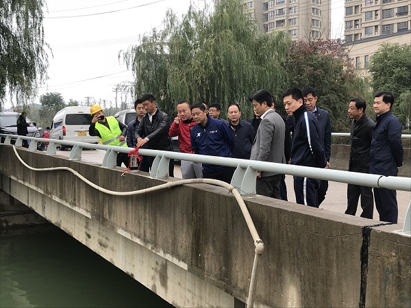 胡洪春常委一行就工程施工的进展情况、施工难点、安全教育进行了详细的询问,同时强调了本工程对于汉阳区水体提质以及全市迎军运会环境综合整治的意义。他要求项目不断完善水体整治配套设施建设,时刻不放松地抓好工程质量与安全管理,认真落实安全生产责任制,切实增强工作的责任感,为2019军运会的开展提供良好的环境。汉阳区水务局局长许才勇现场就市区领导关心的问题一一做了解答。
