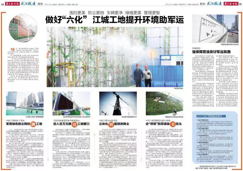 10月24日,楚天都市报“武汉城建”专栏刊登了“围挡更美 防尘更细 车辆更净 绿植更美 管理更智——做好六化 江城工地提升环境助力军运”系列报道,汉阳市政月亮湾城市阳台“投入百万元擦亮工地窗口”,向广大武汉城建单位、市民展示了汉阳市政在助力军运、提升环境做出的重视和努力,同时也传达了汉阳市政“绿色、智慧、安全、文明”的施工理念。