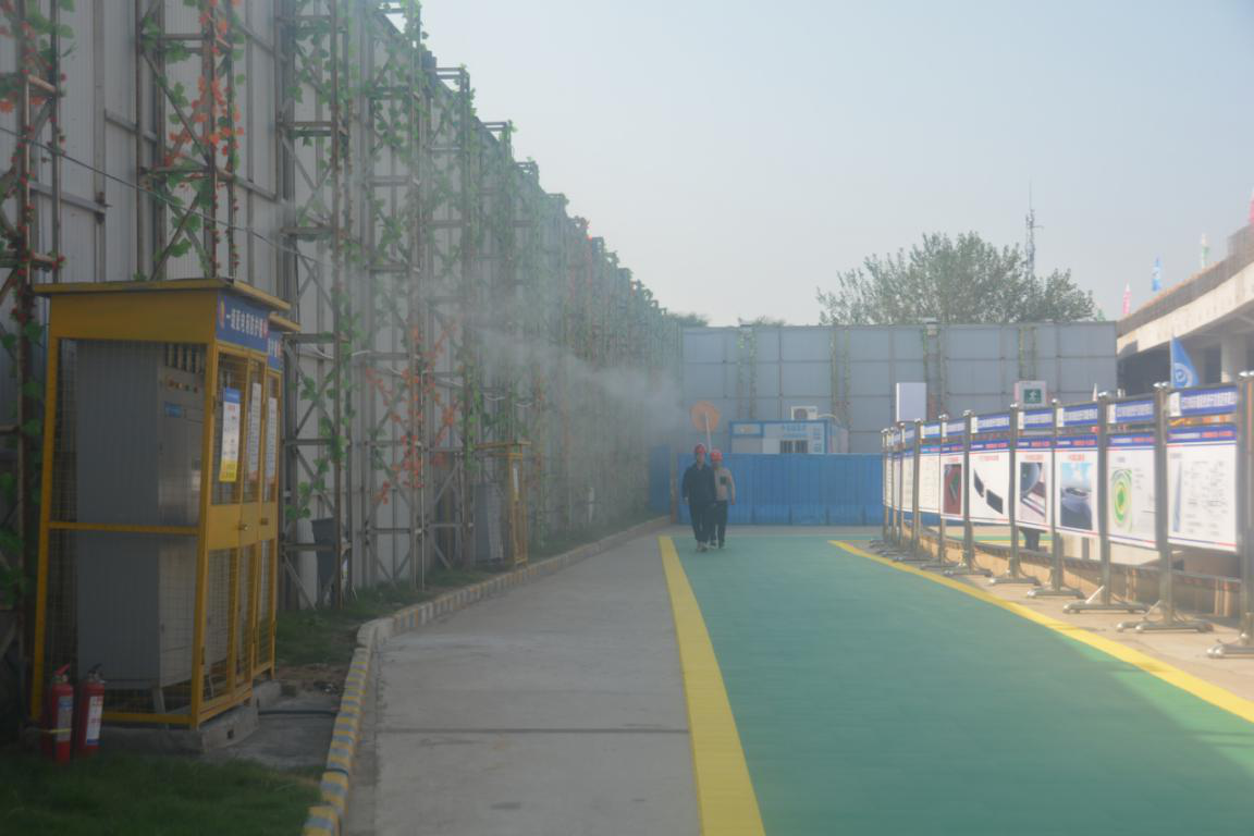 为达到智能管理目标,项目投入约35万元,实现现场降尘、降噪、报警智能化,具体措施是沿着围挡布设喷淋系统,保证施工便道的清洁干净,无扬尘。场内布设的环境监控监测系统,和现场的喷淋及雾炮机等设备相连,管理人员通过手机APP软件可实现智能喷淋,一旦现场扬尘出现预警,现场自动喷淋设施将自动降尘。