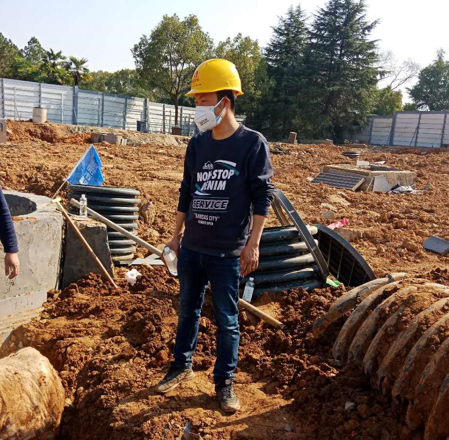 在火神山现场,他主要负责土方施工、强弱电施工以及后勤保障管理工作。现场施工时间紧,任务量大,交叉作业多,协调量大,当被问到:“在这种情况下,是如何完成现场土方施工4万方,强弱电管道施工2900米,防渗膜施工2.5万平米时”,略带腼腆的李卫民说到:“这都是大家齐心协力的结果,一个人的力量有限,但我们拧成一捆绳,就没有什么困难能难倒我们”。虽然现场困难多,但最让他揪心的莫过于队员们的安全问题,他说:“这次筹建是上级交给我们的“考试”,只有队员们都安全,我们才能顺利“交卷””,项目现场,他时刻做好工人们的心理疏导,引导他们克服困难,时刻提醒他们消毒、佩戴口罩,保障他们的后勤需要,“只有这样,我们才能按时保质保量完成任务。”虽然项目现场施工实行24小时两班倒,连续作业,但为保障施工顺利进行,他连续三天没有休息过,实在困了,就随地趴一下,醒了,又继续奋斗。他说:“疫情不等人,我们只有争分夺秒,和病毒赛跑,和时间赛跑,跑到他们前面,我们才能赢。”